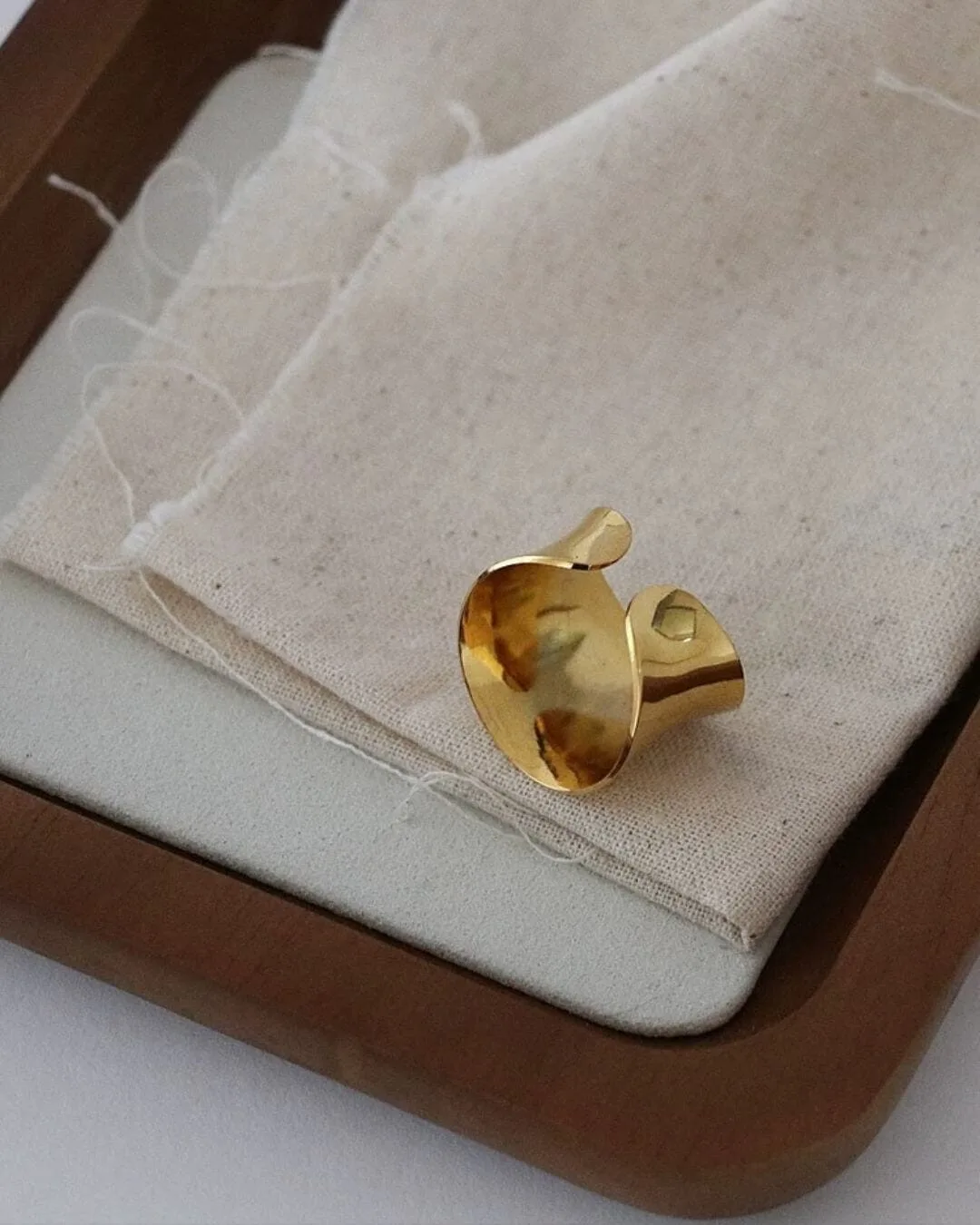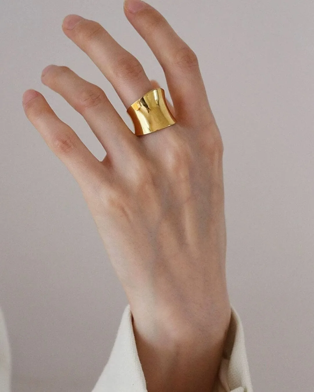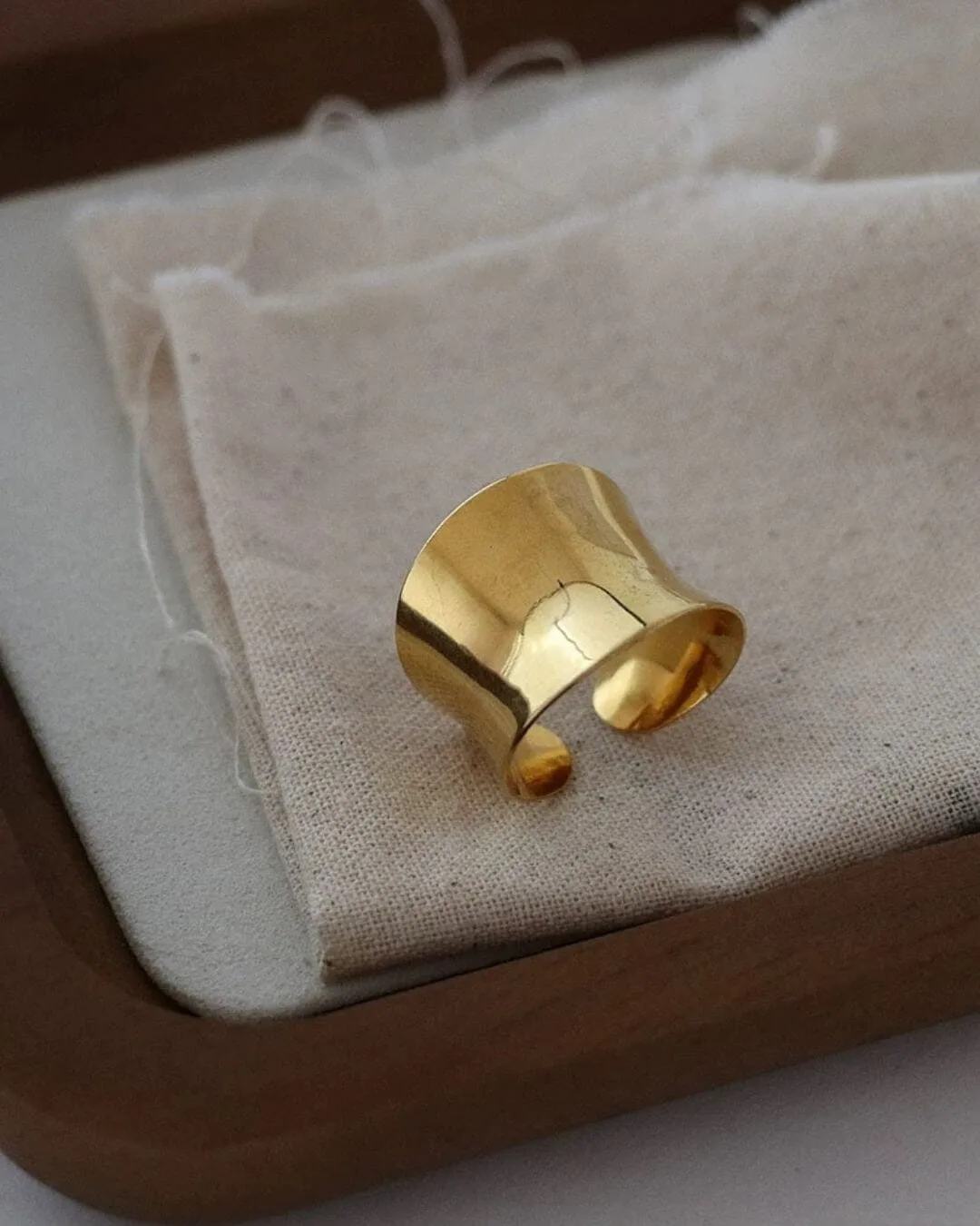 Anillo hecho de acero quirúrgico enchapado en oro 18k. Talle ajustable.