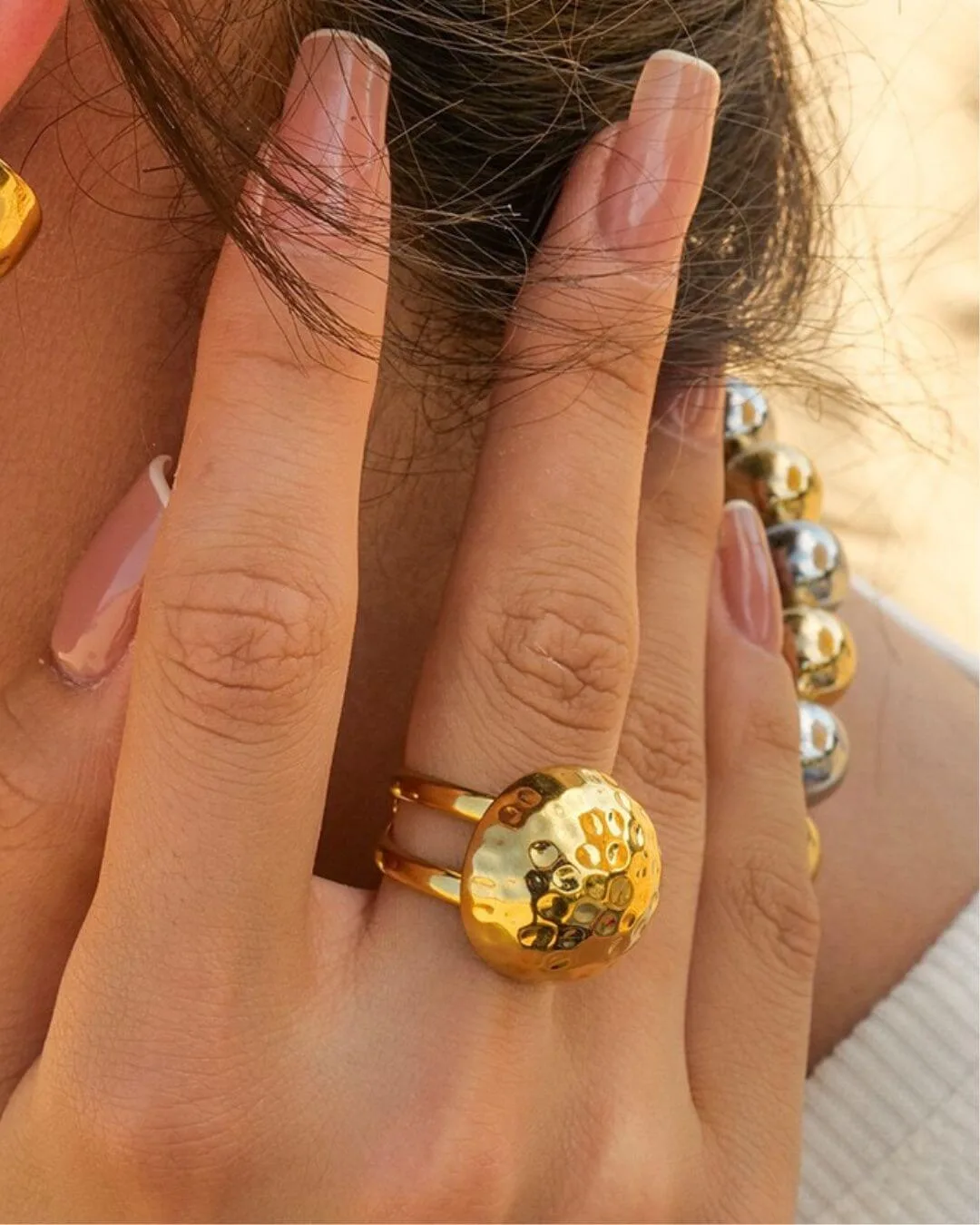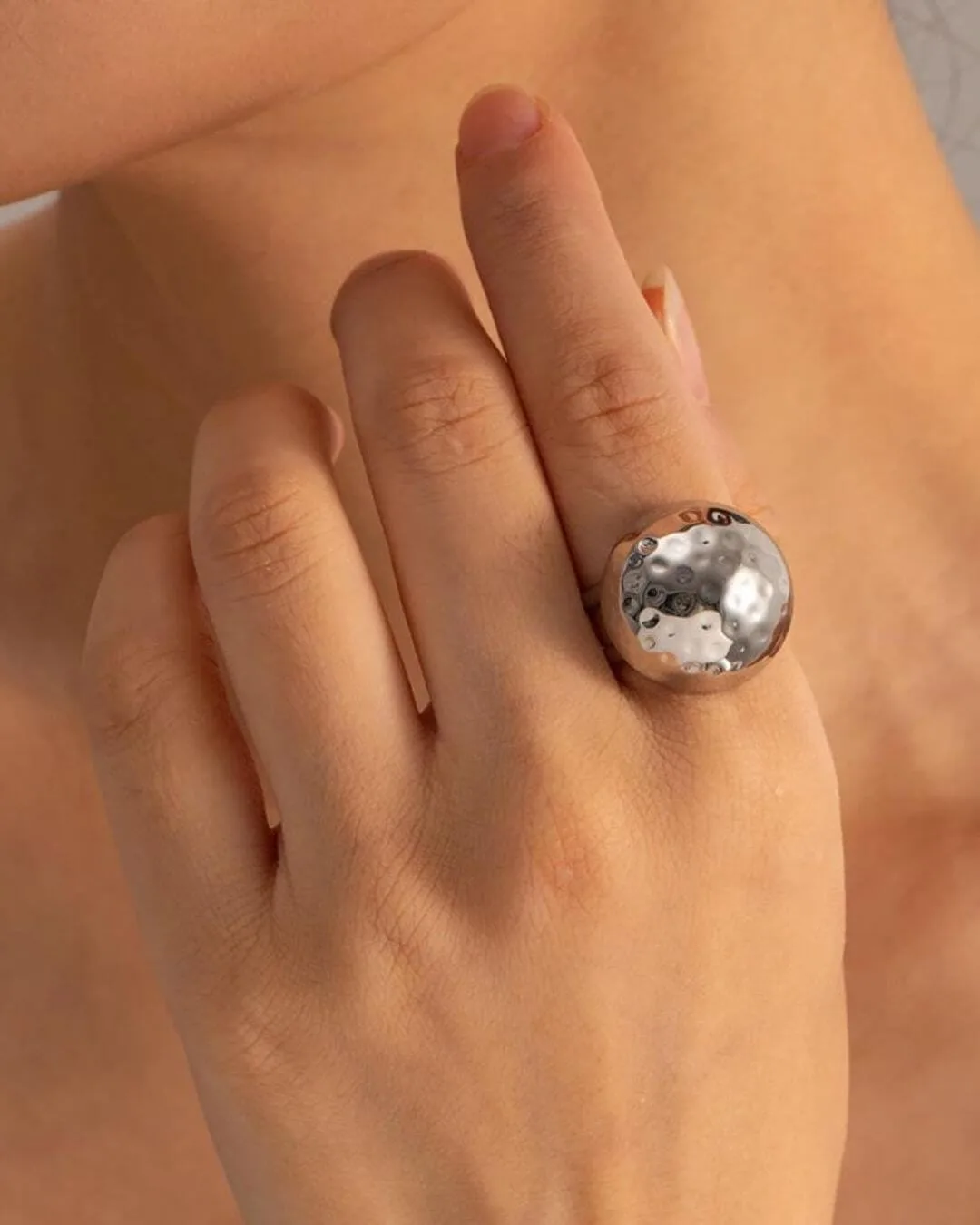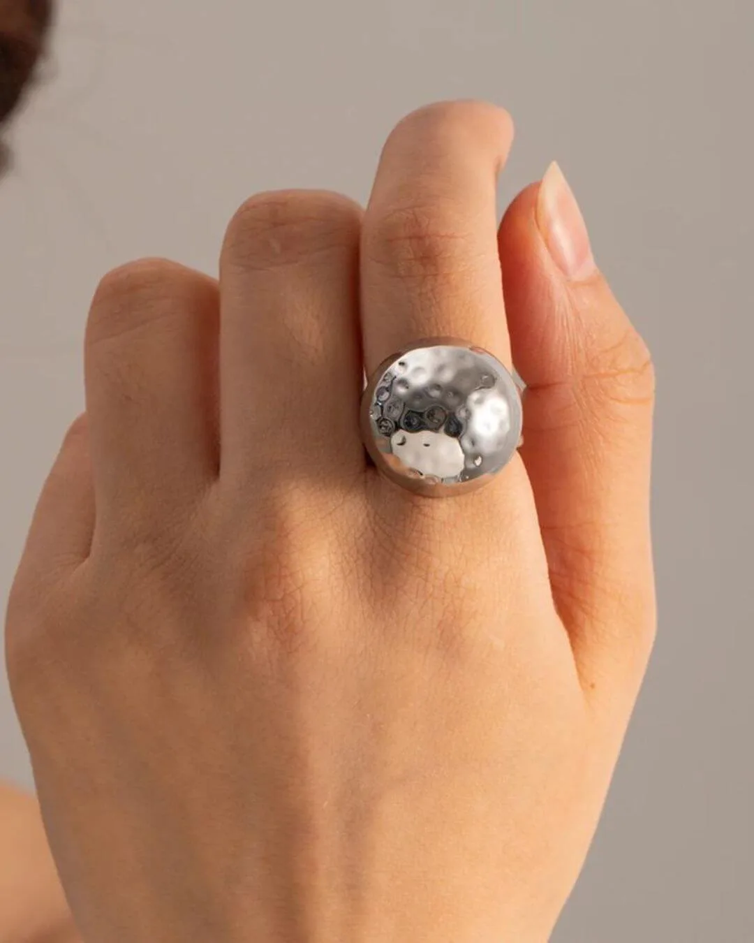 Anillo cúpula acero martillado | Temis