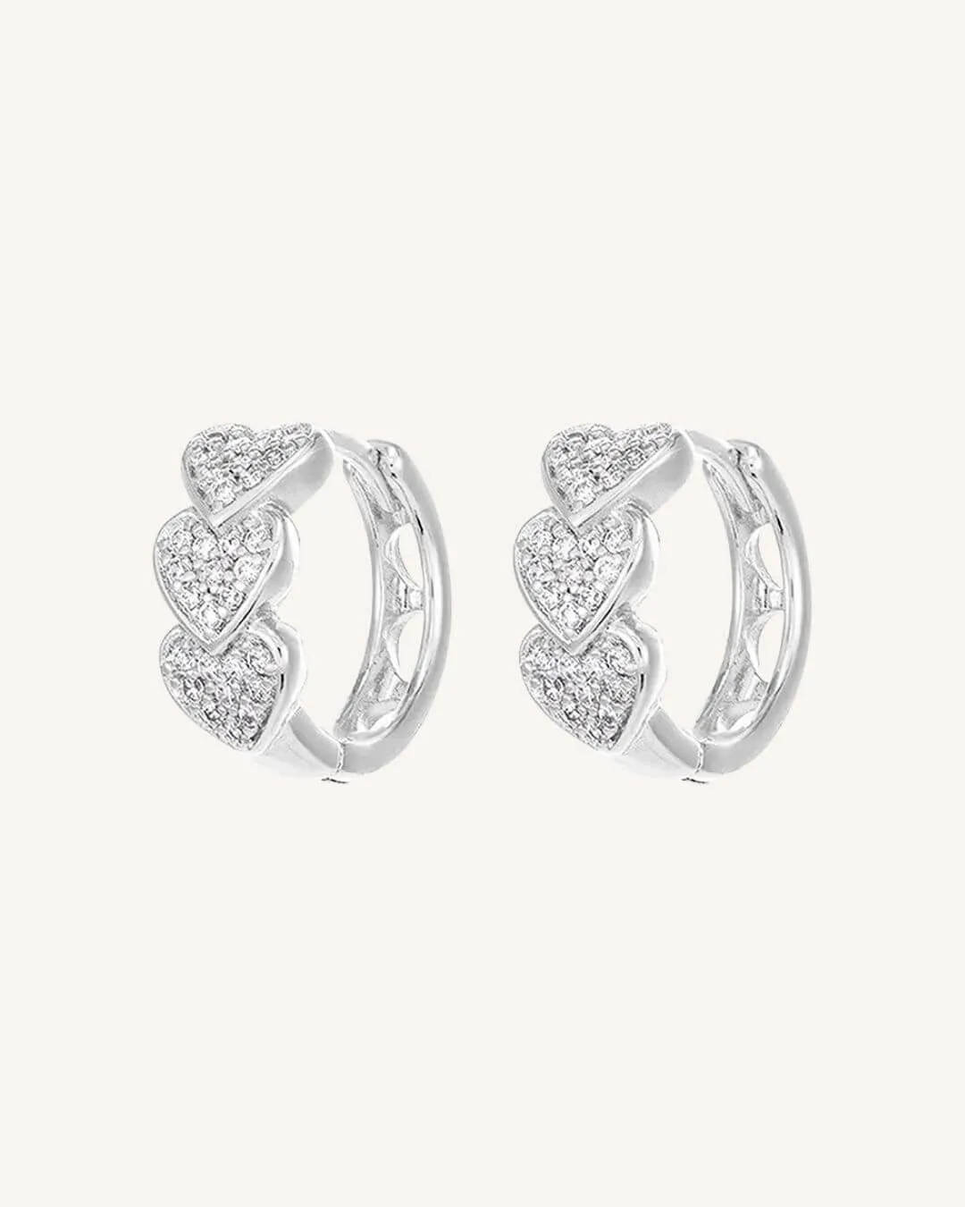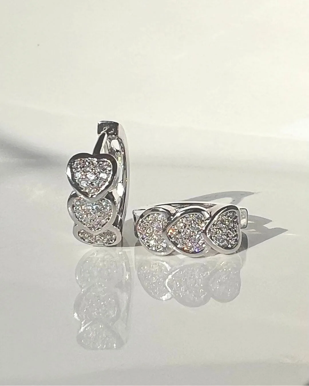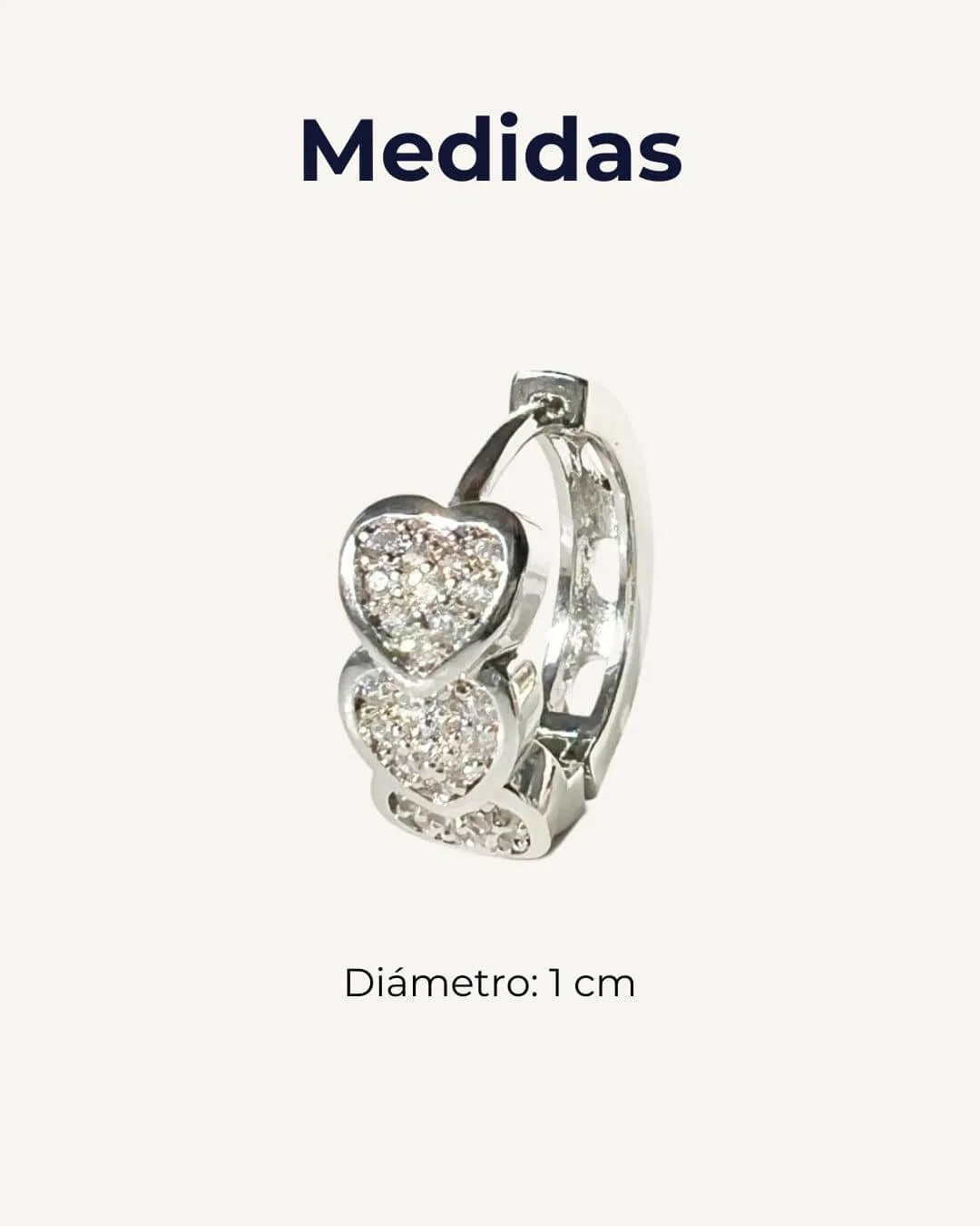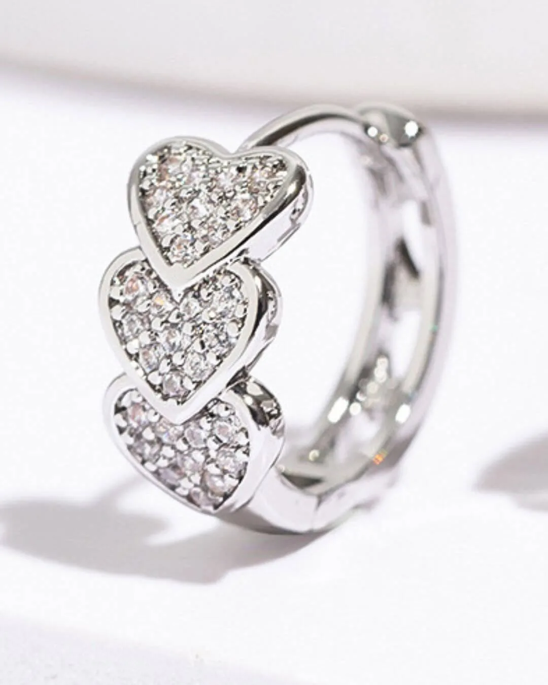 Aros con diseño de corazones hechos en acero quirúrgico hipoalergénico con zirconias. Aptos para pieles sensibles.
