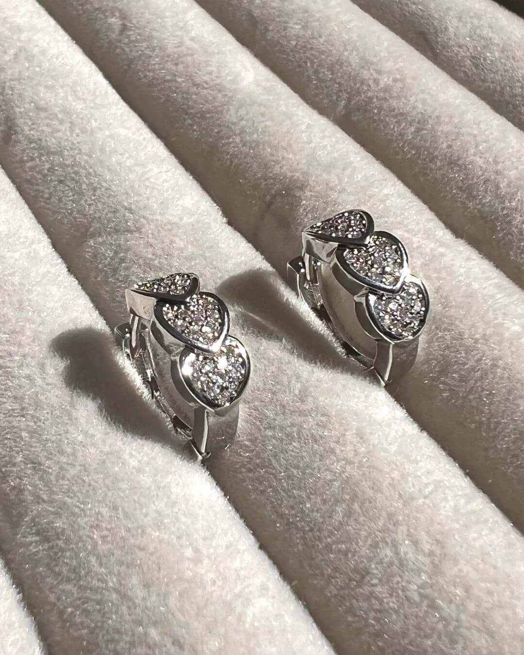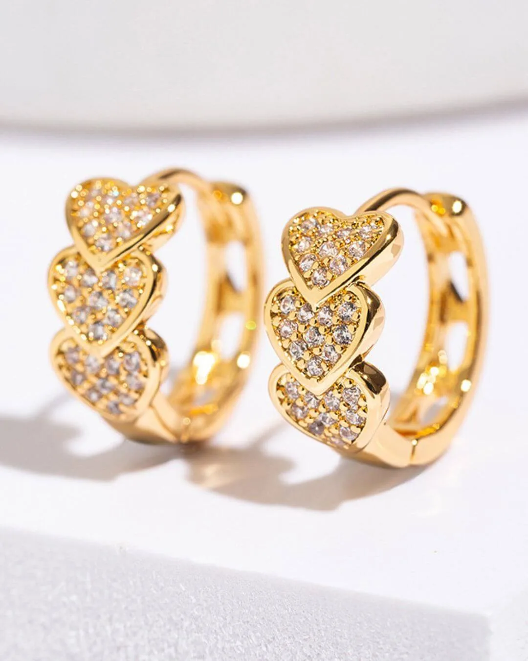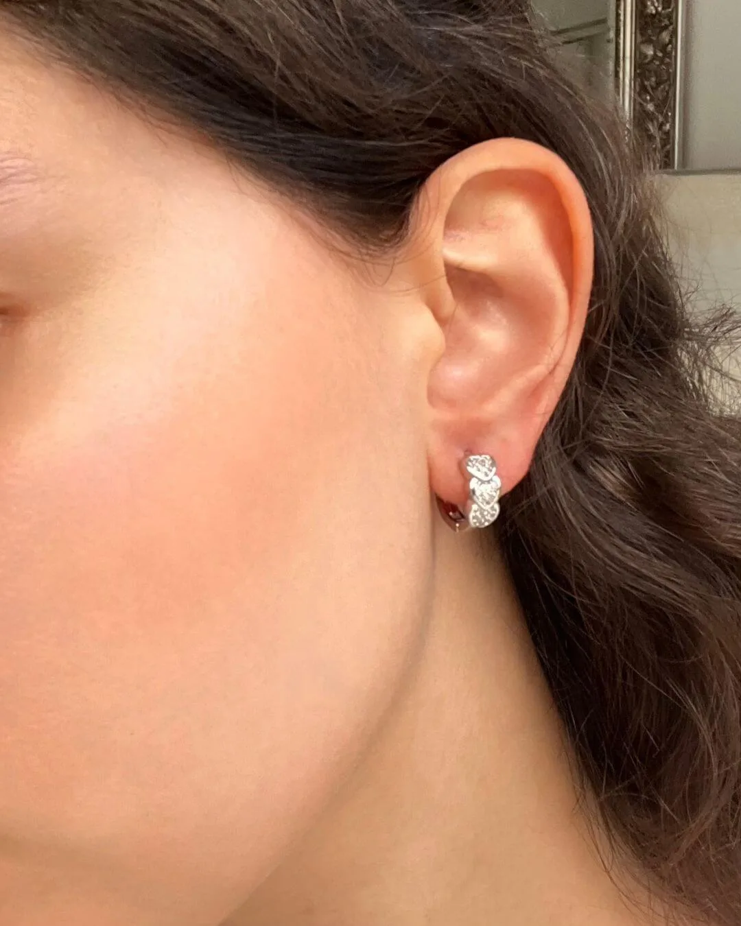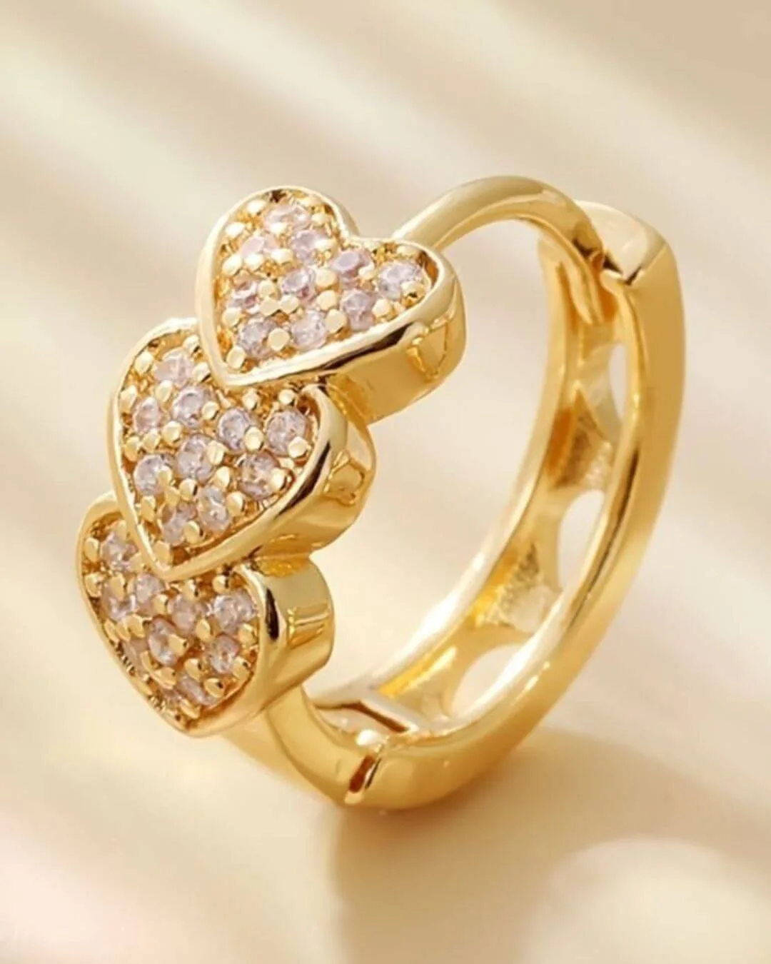 Aros con diseño de corazones hechos en acero quirúrgico hipoalergénico con zirconias. Aptos para pieles sensibles.