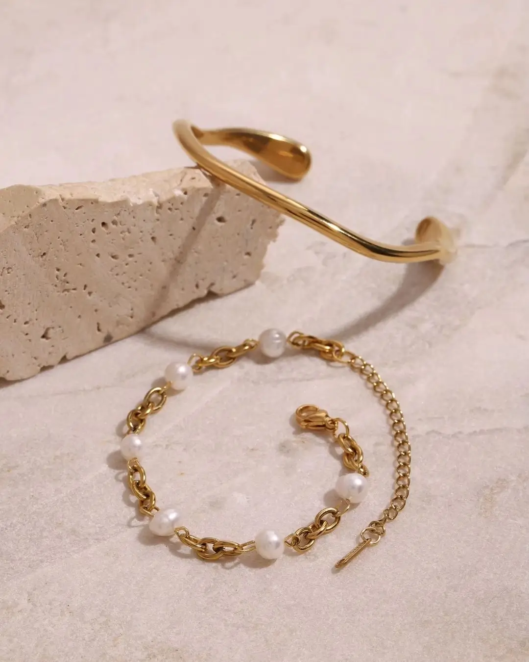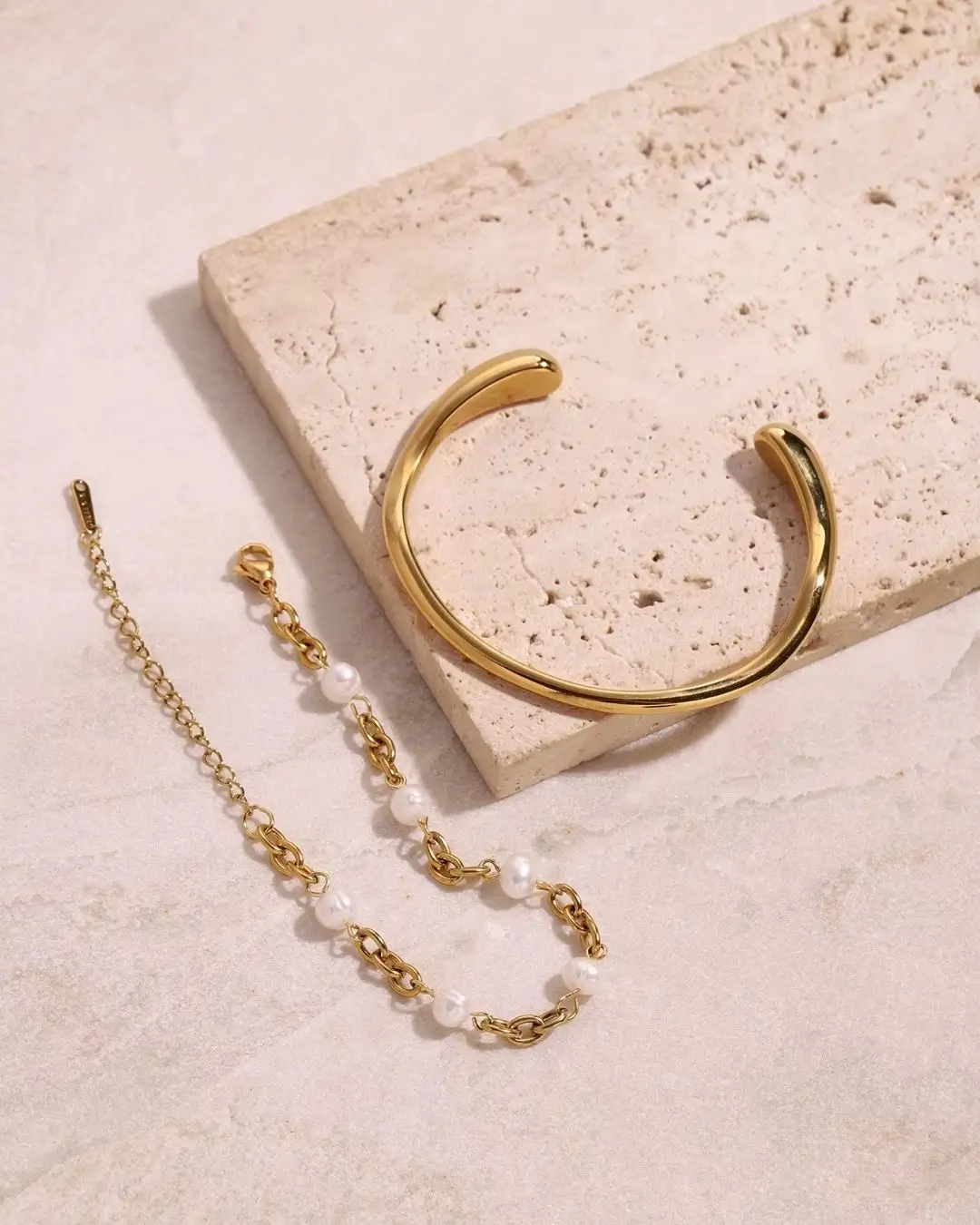 Set de accesorios de acero quirúrgico enchapado en oro 18k.